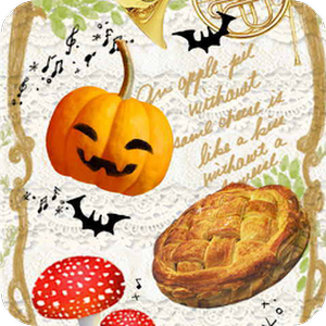 笑っているジャク・オ・ランタンとおいしいそうな林檎やアップルパイ。幸せスイーツに囲まれてハッピーハロウィン☆■設定方法