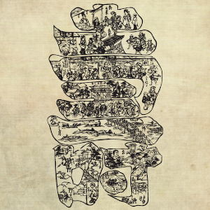 Japanese Scroll... This beautifully illustrated kanji character has been painstakingly animated with over 30 separate points of articulation. Characters move their heads, branches shake back and forth, and boats move in the water. Classy and intricate, a charming scene...